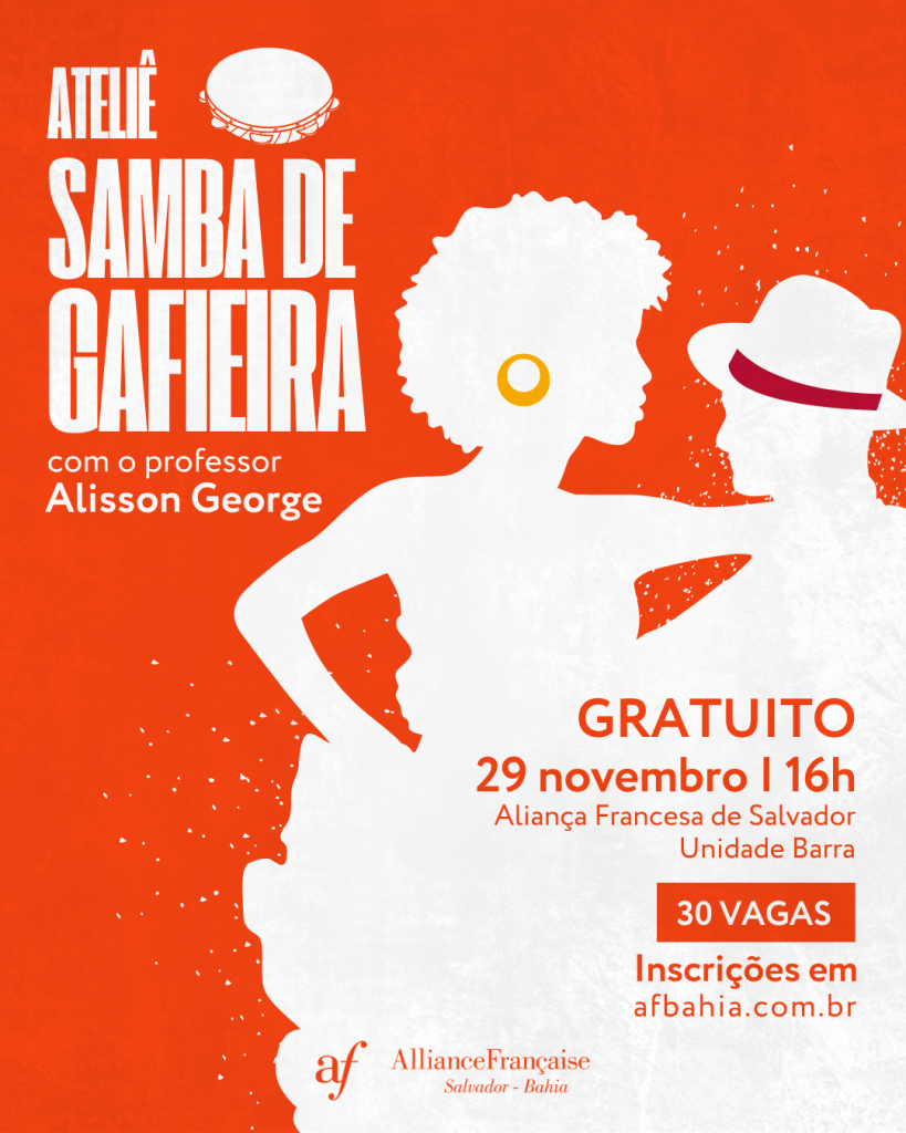 No embalo contagiante do Samba de Gafieira, o Prof. Alisson George conduz uma experiência cheia de energia e movimento no dia 29 de novembro (sábado), das 16h às 17h30, na Sala Micheline Coutinho da unidade Barra (Av. Sete de Setembro, 401 / 2726 – Ladeira da Barra).