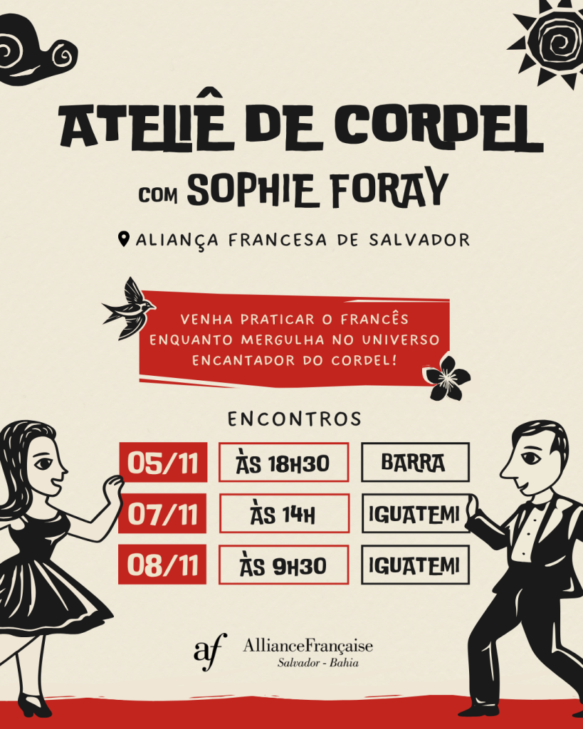A Aliança Francesa de Salvador realiza no dia 1º de dezembro (segunda-feira) às 18h, em sua unidade da Barra, uma sessão especial dedicada ao filme Enfer Libyen, do diretor francês Loïc Piaux. A exibição apresenta um documentário impactante baseado em fatos reais, contando ainda com a presença do jovem diretor, que atualmente vive no Brasil, e …